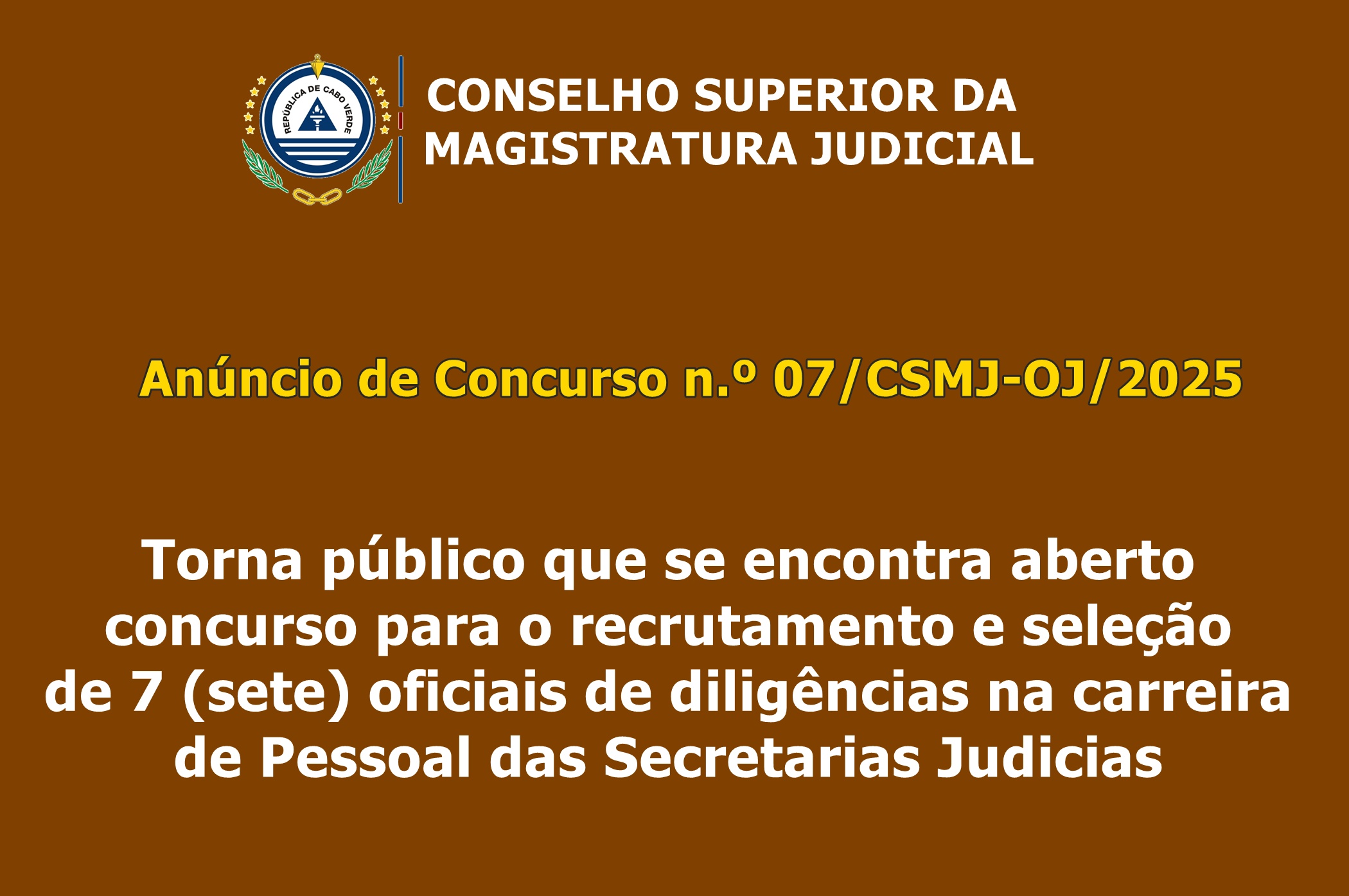 Anúncio de Concurso n.º 07/CSMJ-OJ/2025 para recrutamento de 7 Oficiais de Diligência com formação 14/10/2025
